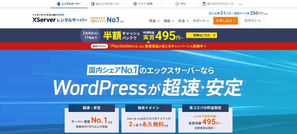 国内シェアNo1・利用者数で選びたい! 又はWordPressをとにかく安心・安全に運用したいなら【エックスサーバー